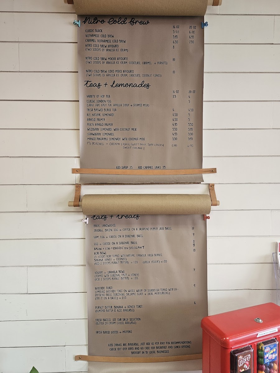 This menu is designed for customers seeking quick service for breakfast, snacks, or beverages, with choices that accommodate both traditional coffee shop offerings and healthier options like acai bowls and smoothies.