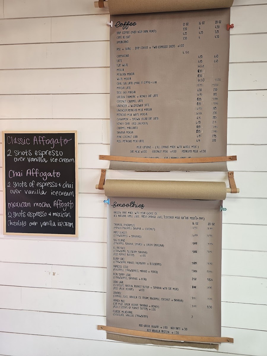 Smoothies and Bowls: The smoothie menu provides a selection of blended fruit and vegetable drinks with names like Lava Lava, Big Island Greens, El Pacifico, Tropical Pineapples, and Maui Sunset. Acai bowls are also featured, offering a nutritious choice for a light meal or snack.